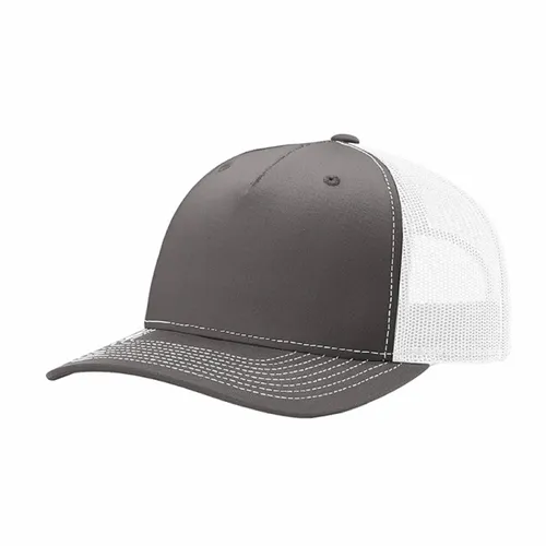 Front: 60% Cotton/40% Polyester Back: 100% Polyester Cotton/Polyester Twill Fabric, Trucker Mesh Structured, Five-panel, Mid Pro Profile Pre-curved Contrast Stitch Bill Adjustable Snapback Closure