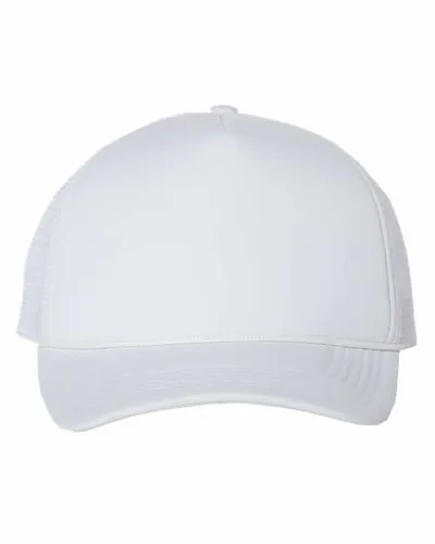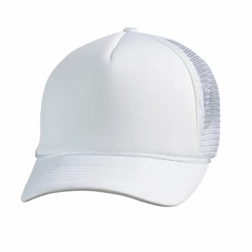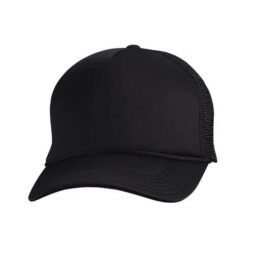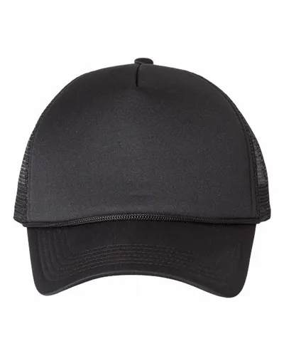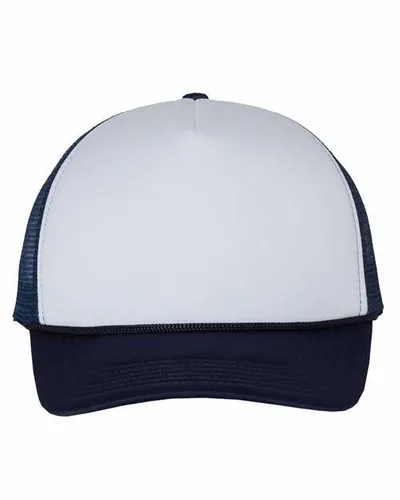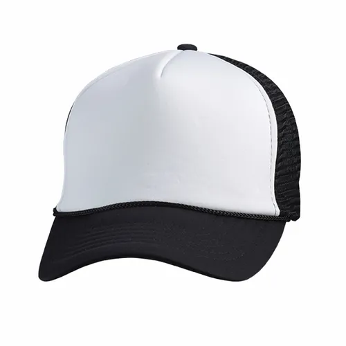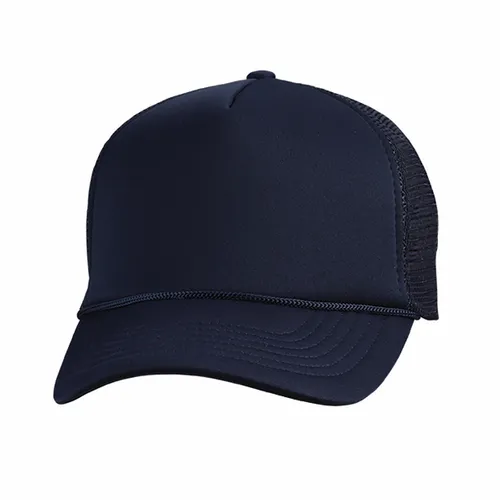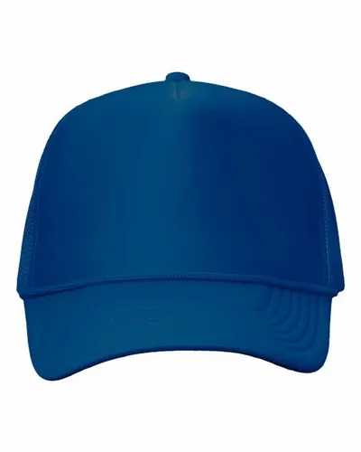 Foam Front, Mesh Sides and Back. Structured, 3 1/2 Crown, Five Panel, Braid, Double Plastic Tab Closure, One Size