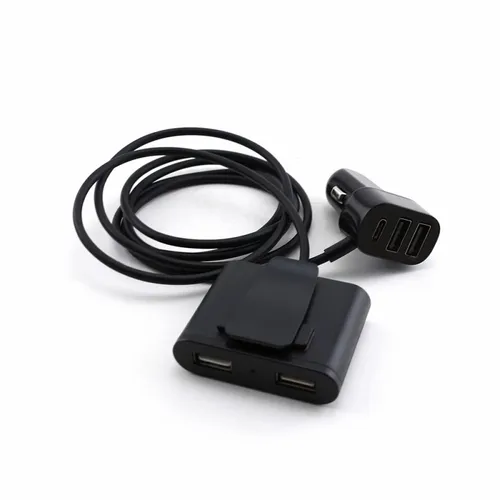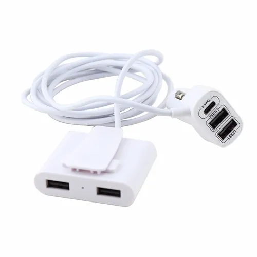 The Road Trip car charger provides all the power and charging ports (even one USB Type C port!) to keep your mobile devices charged while road-tripping! Features: - Front Seat Charging Ports with total 3.4 A Output: 2 x USB; 1 x Type C. Simultaneously charge 3 iPhones at full speed. - Back Seat Charging Ports with total 3.4 A Output: 2 x USB. Simultaneously charge an iPad and an iPhone at full speed - Cable Length: 6 Feet.