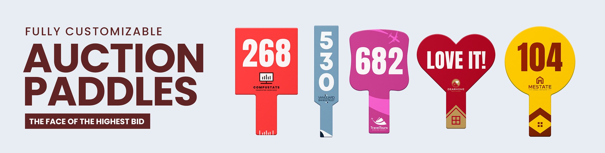 Absolutely thrilled with our custom auction paddles! They looked great, worked perfectly during the event, and even doubled as keepsakes for donors. - Emma Brooks