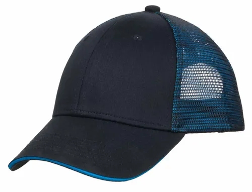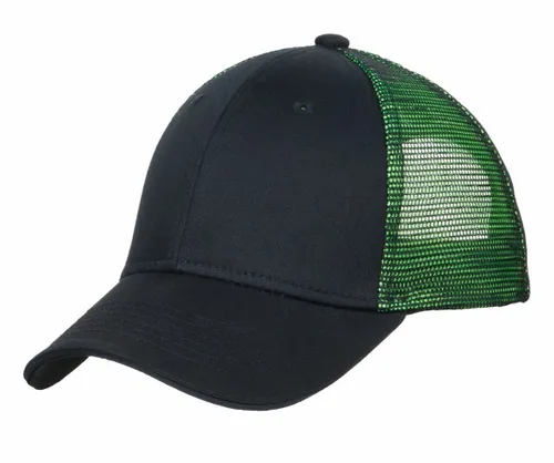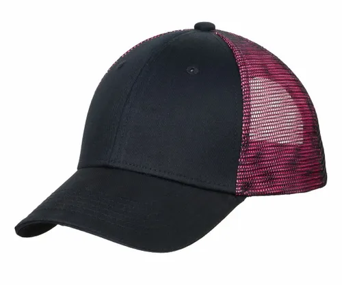 Our two-tone mesh design makes this breathable cap stand out. The front panels are black twill, while the mid and back panels layer color under the mesh for an iridescent effect. | Fabric: 100% cotton twill front panels; 100% polyester mesh mid and back panels Structure: Structured Profile: Mid Closure: 7-position adjustable snap