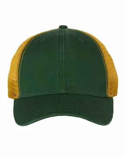Chino Twill Front Panels, Mesh Sides and Back, Bio-washed Structured, Mid-profile, Six Panel, Contrast Taping, Pre-curved Visor, Sewn Eyelets, Velcro Closure, One Size