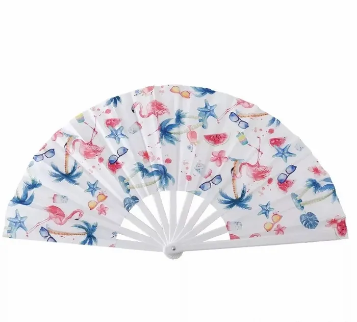 A Easy Folding Hand Fan is a single-sided printed fan made from polyester with a durable plastic handle, designed to open and close smoothly with a silky feel. Measuring 10 inches, these fans are lightweight, portable, and perfect for both practical use and decorative purposes.