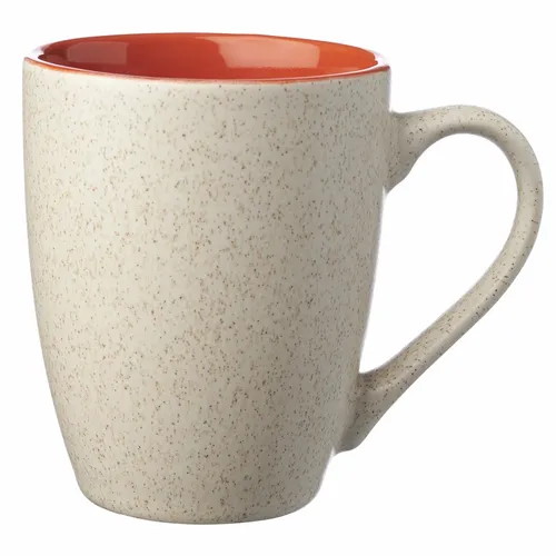 10 oz. Ceramic Mugs. Sesame Speckle Outer Finish. Easy Comfort Grip. Great for Coffee, Tea, Soft Drinks, and Hot Chocolate on a Cozy Day! Recommended Hand Wash Only