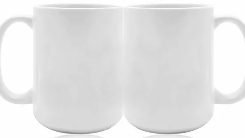 15 oz. Photo Sublimation White Ceramic Mug. Smooth Molded Ceramic Composite. Glossy White Exterior. Easy Comfort Grip Curved Handle. Recommended Hand Wash Only