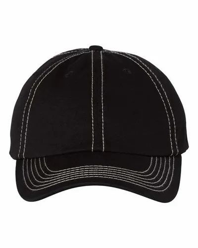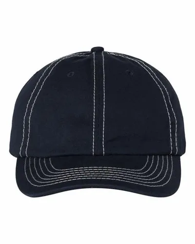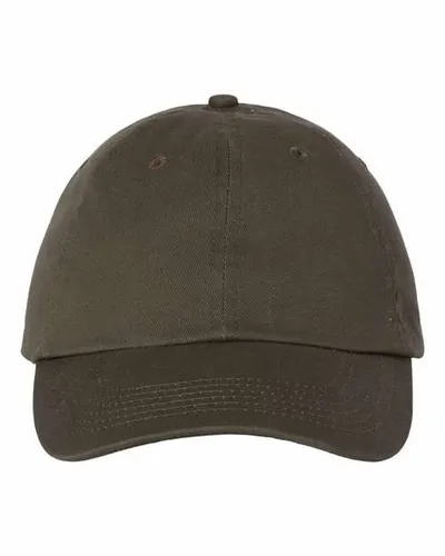 Bio-washed Chino Twill, Unstructured, Low Profile, Six-Panel, Pre-curved visor, Sewn Eyelets, Cloth Strap, Tri-glide Buckle Closure, One Size: Adult