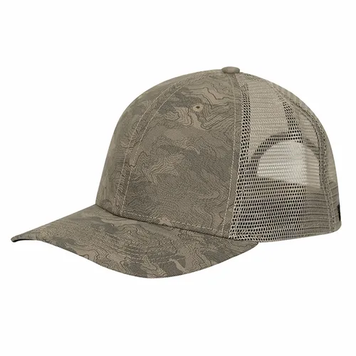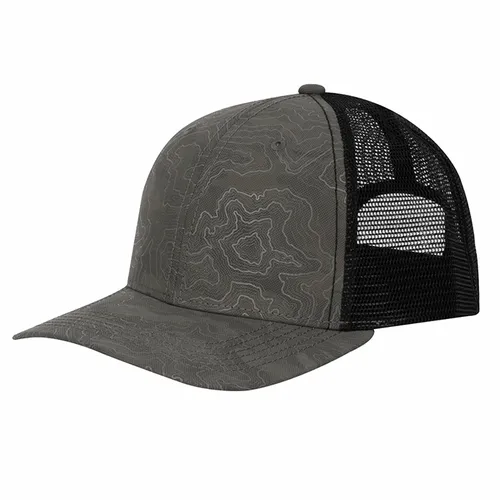 Front: 100% Polyester, Camo Print Tonal Print Overlay of Topographical Pattern Back: 100% Polyester, Classic Trucker Mesh Modern Fit: °Structured, Low-profile, Slightly Curved Bill, Contrasting Underbill °Six-panel NO Sweat Moisture-wicking Sweatband Snapback Closure