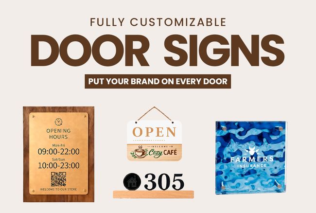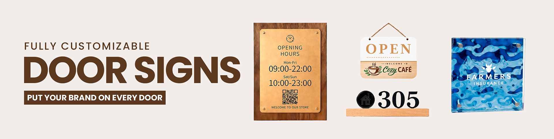 I chose the walnut and metal door sign for my studio and it looks beautiful. The combination of wood and metal gives it a premium feel, and the craftsmanship exceeded my expectations. The customization process was smooth, and the final product looked exactly like the preview. It adds a warm but modern touch to the space. - Aisha Khan (UAE)