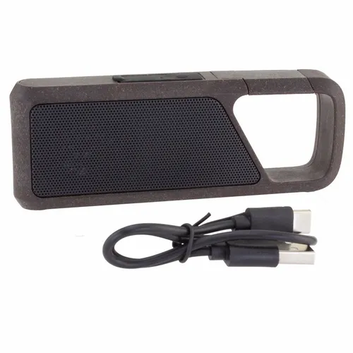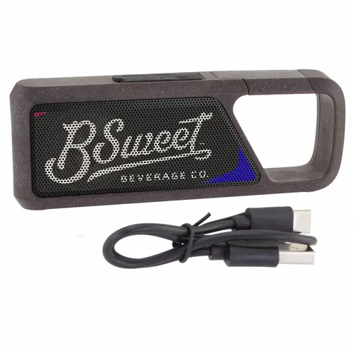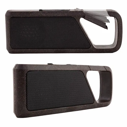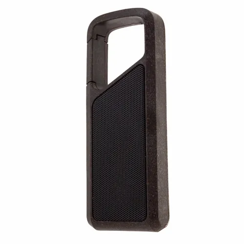 The GroundSound is a special eco-conscious wireless speaker made with recycled coffee grounds. The speaker casing is 5% plant fiber, 70% recycled plastic, and 25% recycled coffee grounds provided by an instant coffee manufacturer. You not only get to give a great-sounding speaker, but you also show your support for earth-friendly products. The speaker case exterior has a fun lightly-speckled coffee ground pattern. The top handle is also an easy spring clip to hook it onto a bag conveniently.