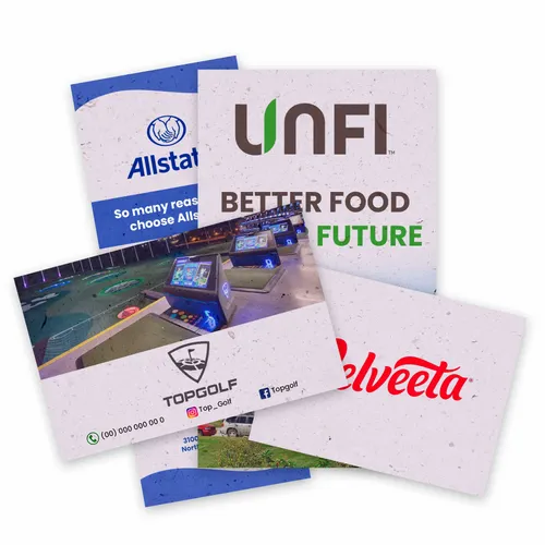 • Flat, uncoated Seed Paper Panel Cards made from 100% seed paper. Ideal for invitations, menus, inserts, handouts, and eco-minded direct mail. They deliver your message and a sustainability story—recipients can plant the card to grow flowers.