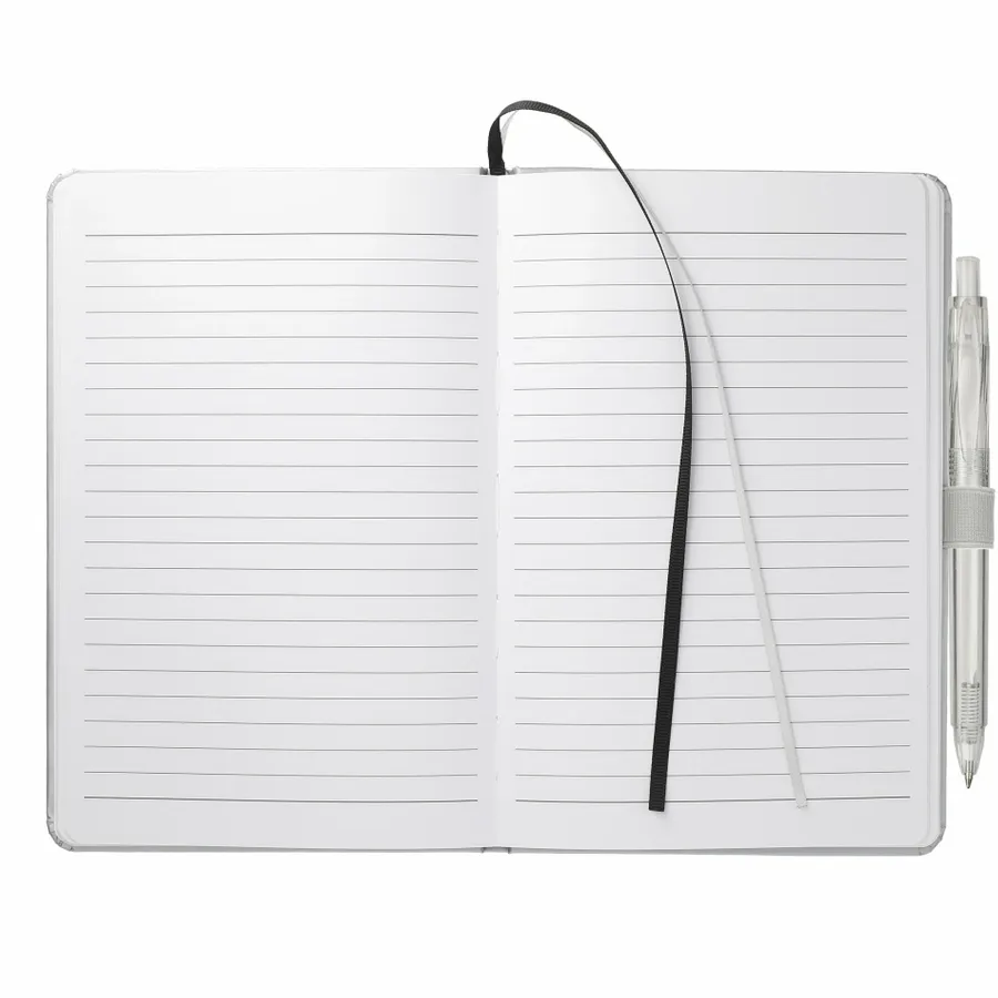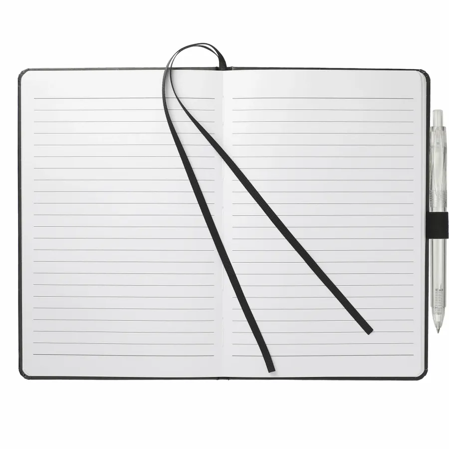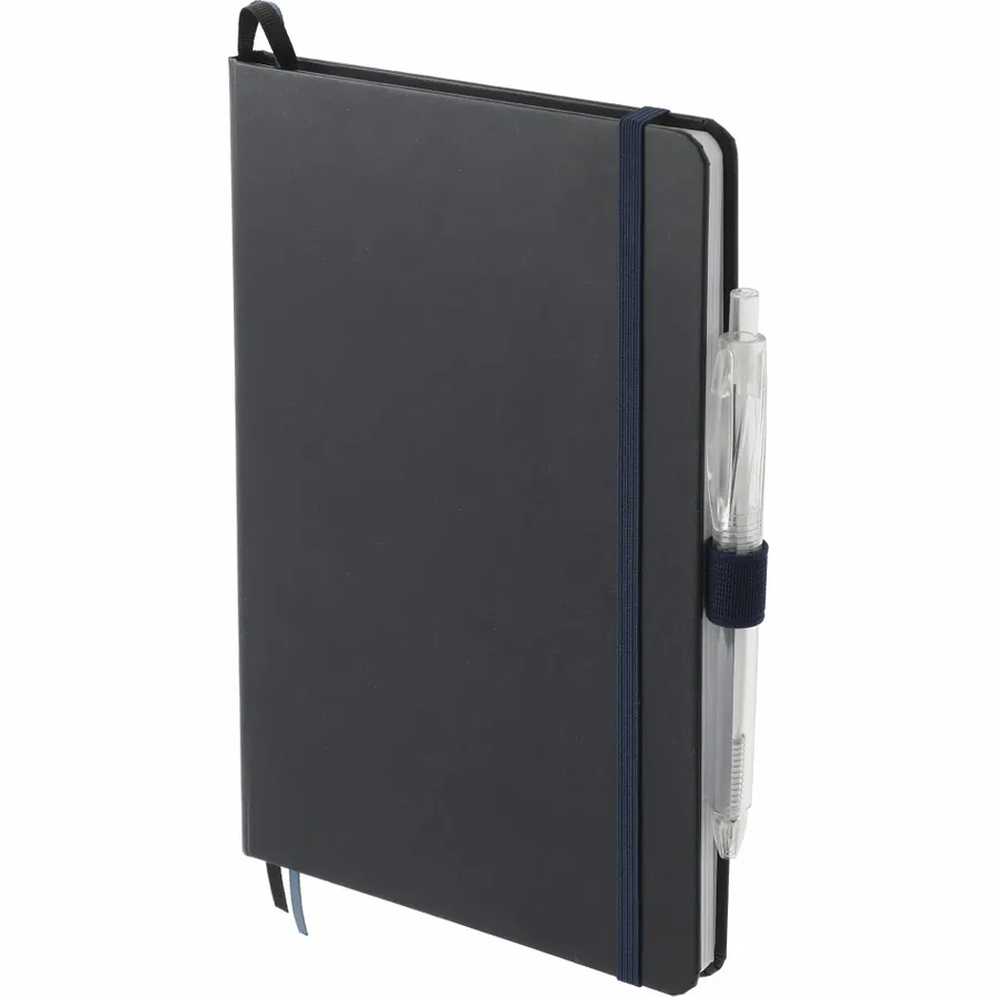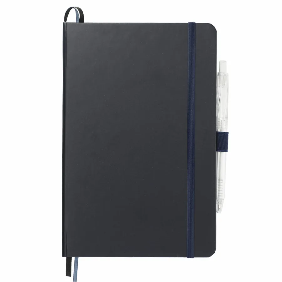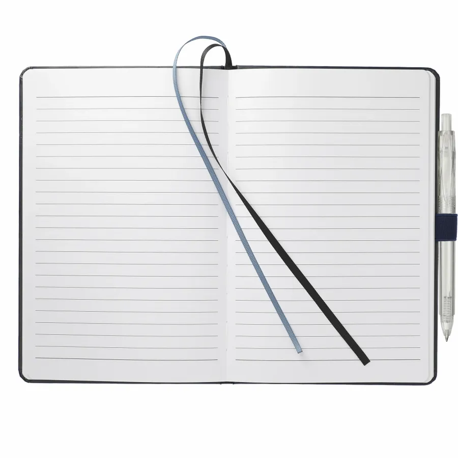 The 5.5 x 8.5 FSC Mix Bound Journal Set includes the 5.5 x 8.5 FSC Mix Bound Journal (2800-82) and FUNCTION RPET Quick-Dry Gel Pen (6003-29). The set features a FSC-certified paper cover with 80 sheets of white FSC-certified soy based ink lined paper. Includes color-matching elastic closure, pen loop and ribbon page marker. Through a partnership with 1% For The Planet, one percent of sales of all EcoSmart products are donated to environmental nonprofits.