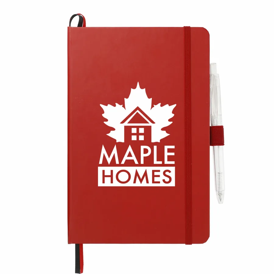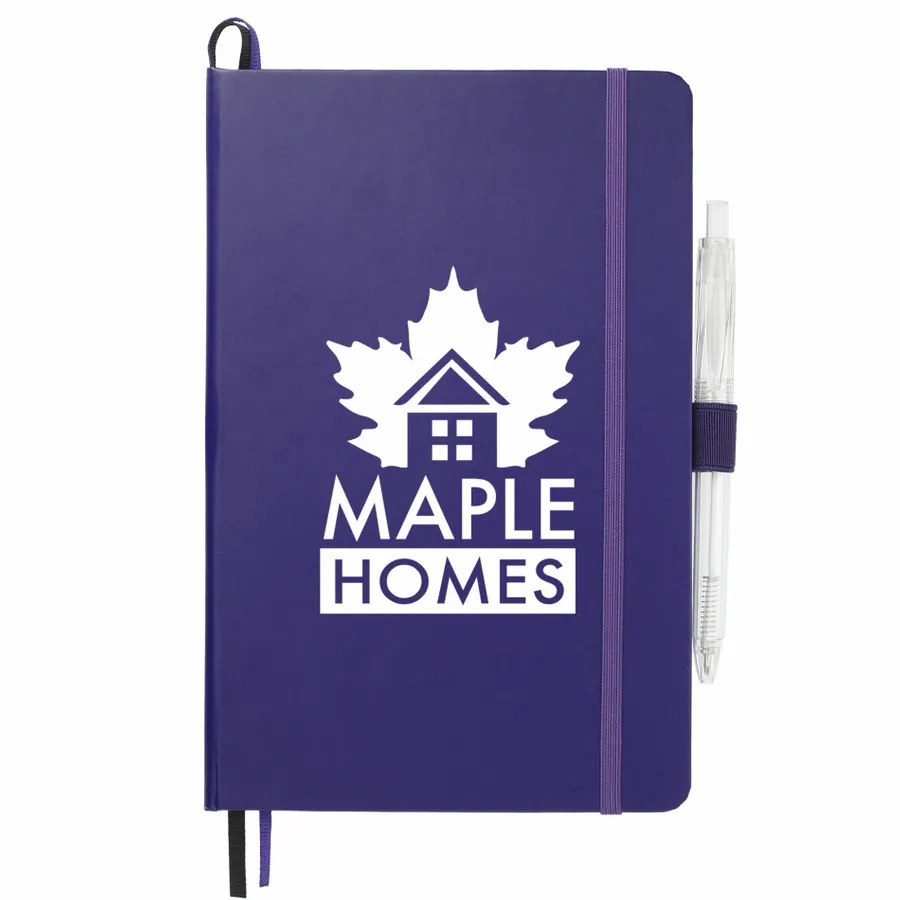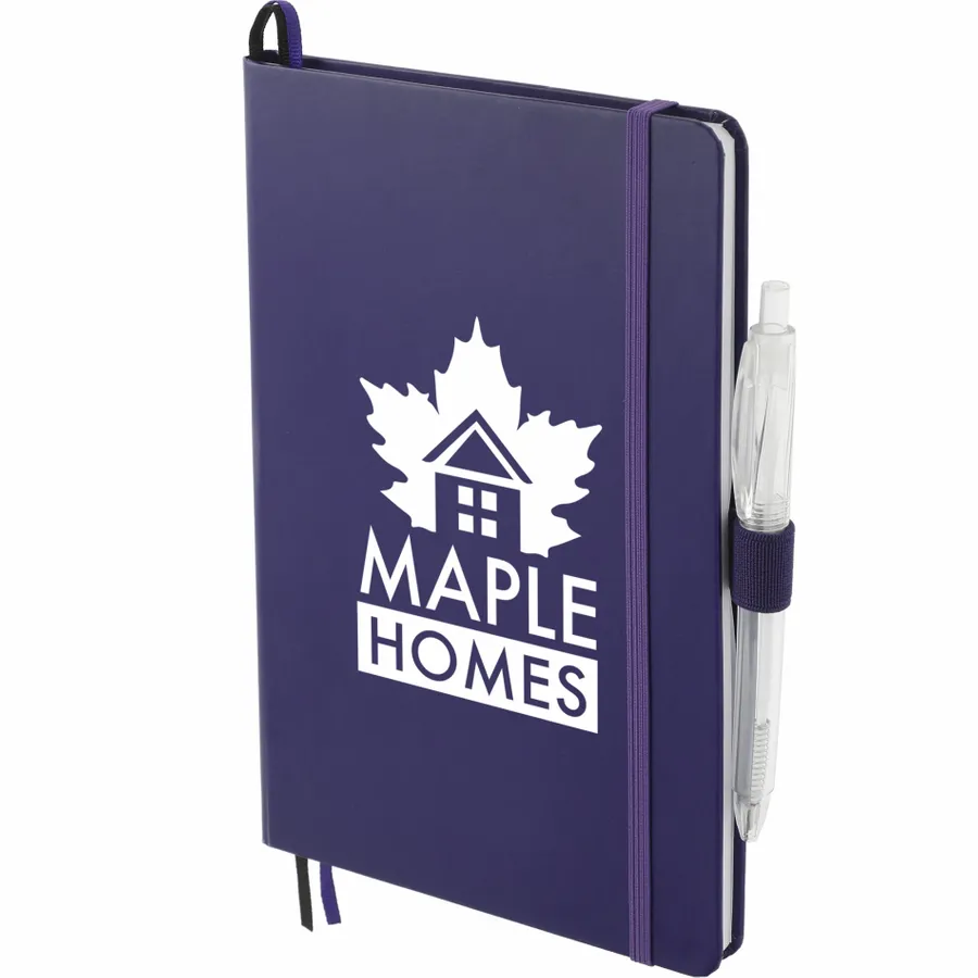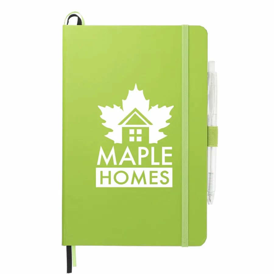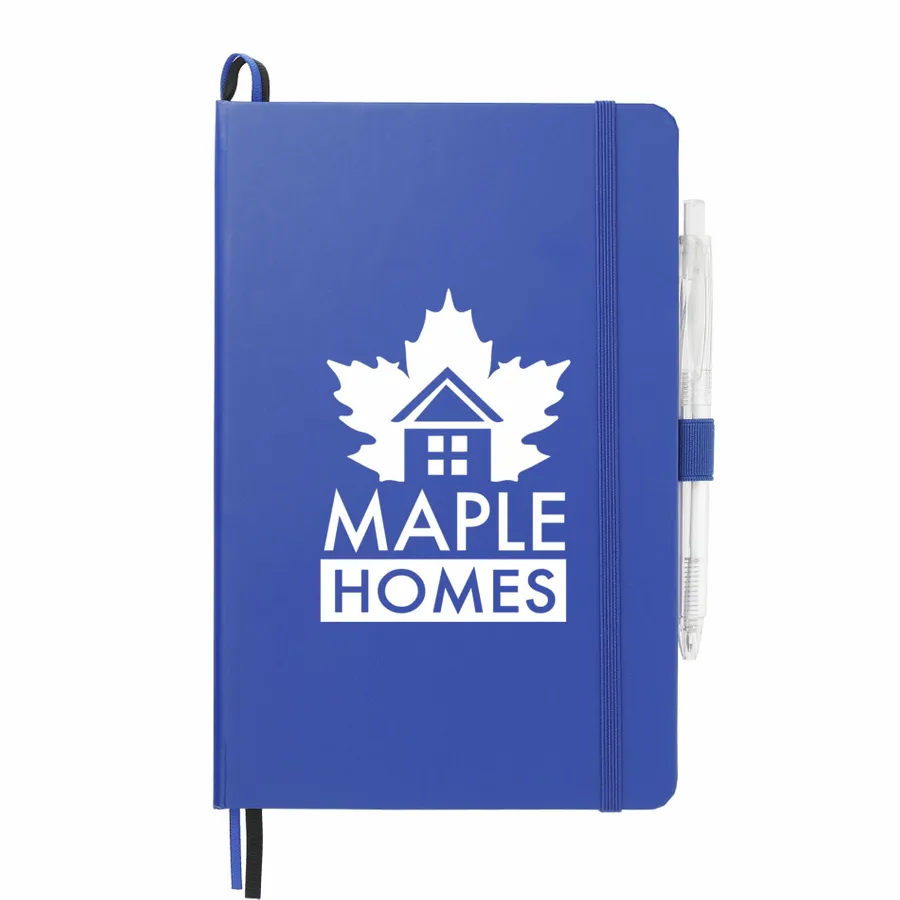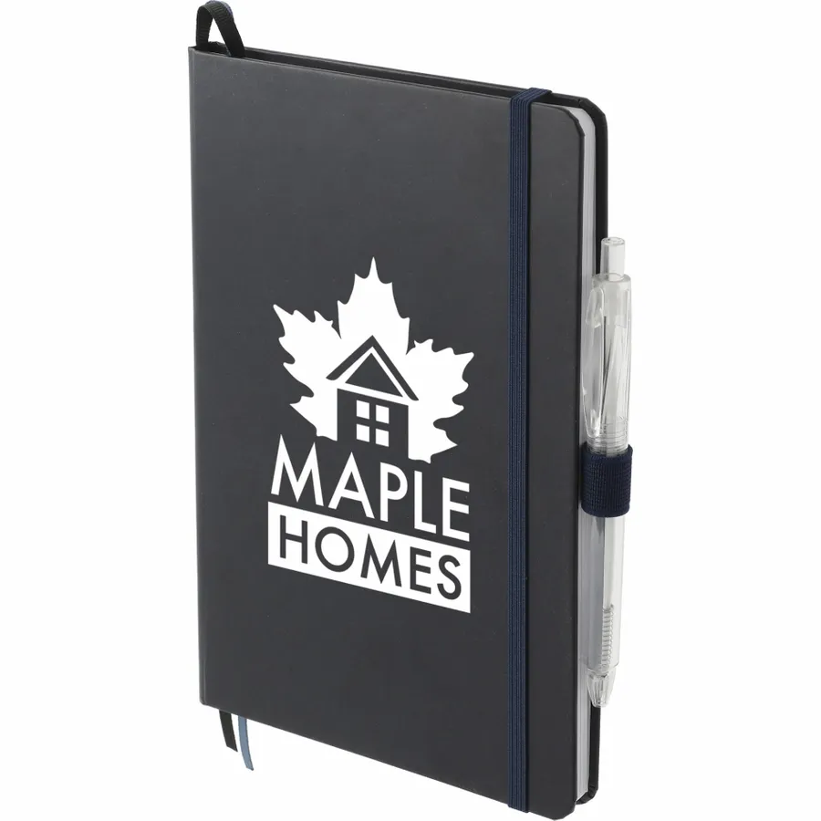 The 5.5 x 8.5 FSC Mix Bound Journal Set includes the 5.5 x 8.5 FSC Mix Bound Journal (2800-82) and FUNCTION RPET Quick-Dry Gel Pen (6003-29). The set features a FSC-certified paper cover with 80 sheets of white FSC-certified soy based ink lined paper. Includes color-matching elastic closure, pen loop and ribbon page marker. Through a partnership with 1% For The Planet, one percent of sales of all EcoSmart products are donated to environmental nonprofits.