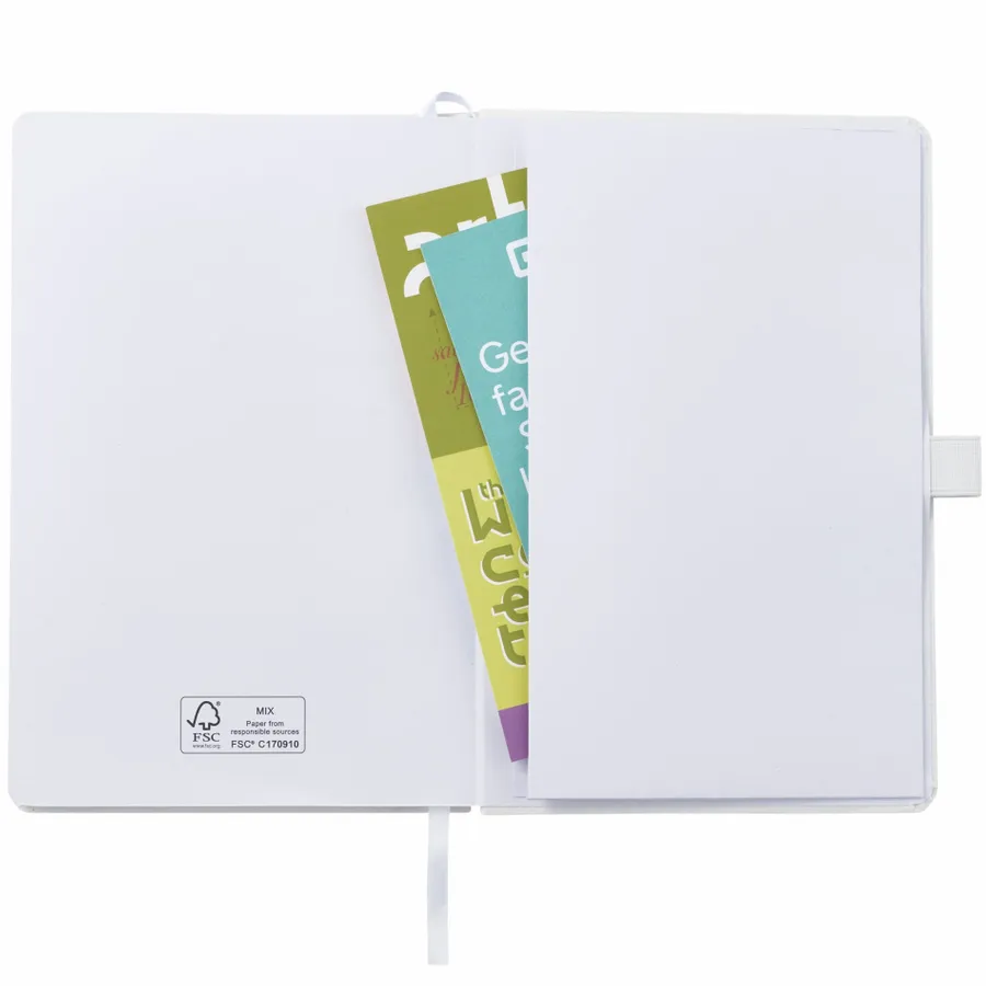 The 5.5 x 8.5 FSC Recycled Seed Paper Bound Journal features a biodegradable seed paper cover – made by mixing paper pulp with daisy seeds. The journal also includes 80 sheets of FSC- Certified Recycled lined paper. An elastic band, color-matching page marker ribbon, and a document pocket in the back provide exceptional organization when you’re on the move. The journal also features an integrated pen loop to securely hold your favorite pen. Through a partnership with 1% For The Planet, one percent of sales of this item are donated to environmental nonprofits.