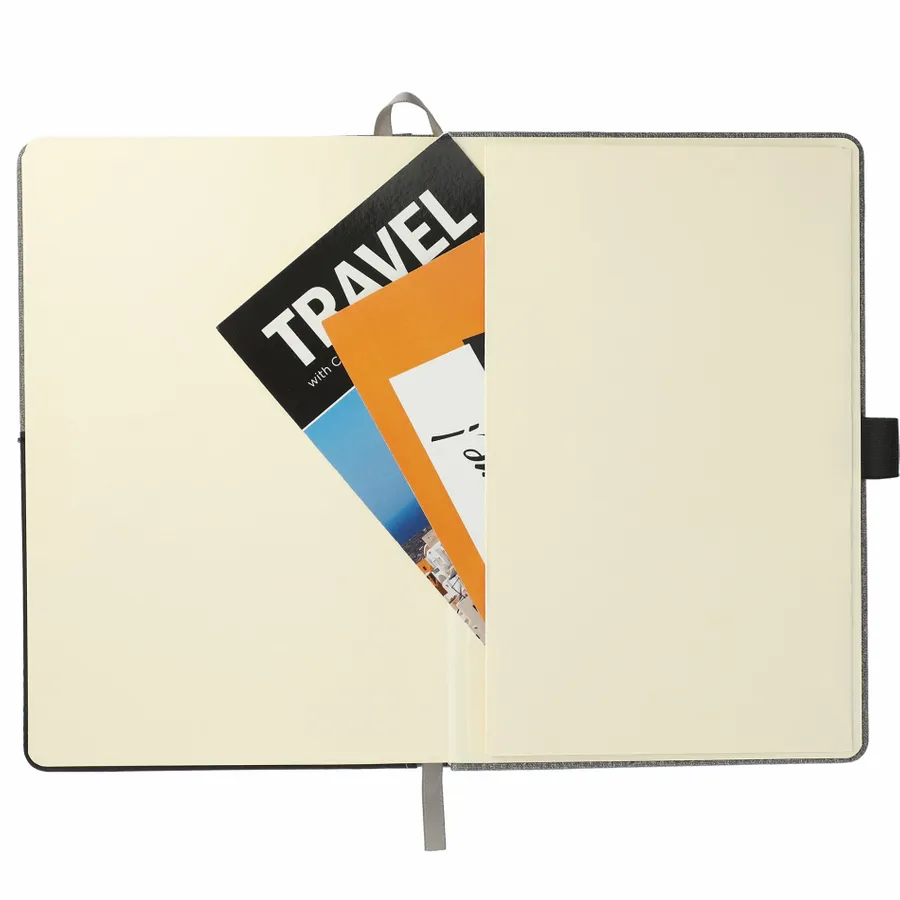 Be prepared on the go with the 5.5 x 8.5 FSC Mix Siena Heathered Bound Journal. Store a smartphone, business card, or documents in the front pocket, and always have a pen on-hand with the elastic pen loop. The 5.5 x 8.5 FSC Mix Siena Heathered Bound Journal includes a back document pocket, ribbon page marker, and 80 sheets of FSC Mix cream lined paper.