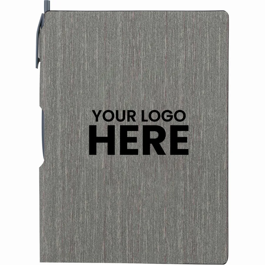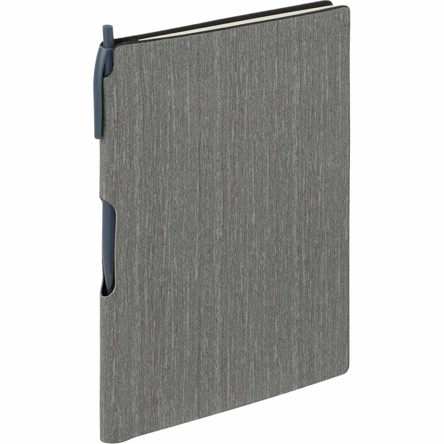 The Bullet 6 x 8.5 FSC Mix Bari Notebook with Pen is an A5 bound notebook designed to look like wood. This attractive notebook includes 80 sheets of beige ruled FSC Mix paper and a matching plastic ballpoint pen that can be tucked away in the spine. Note that pens are packed separately.