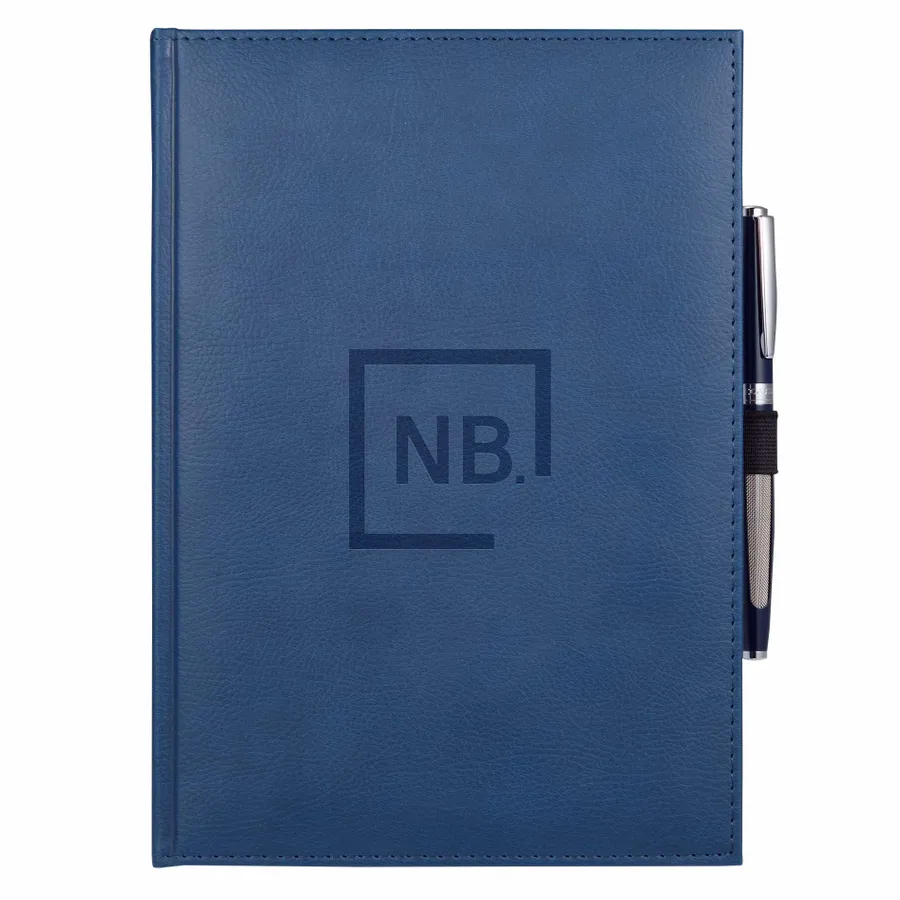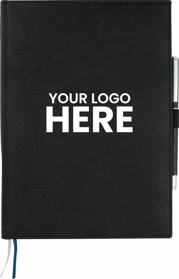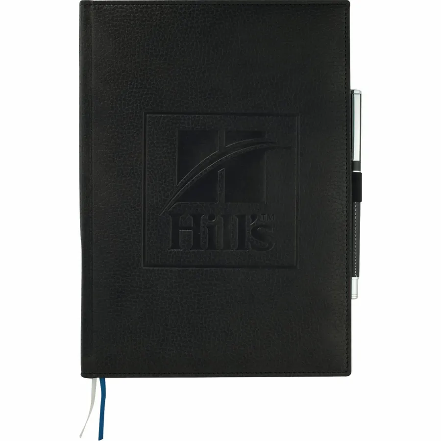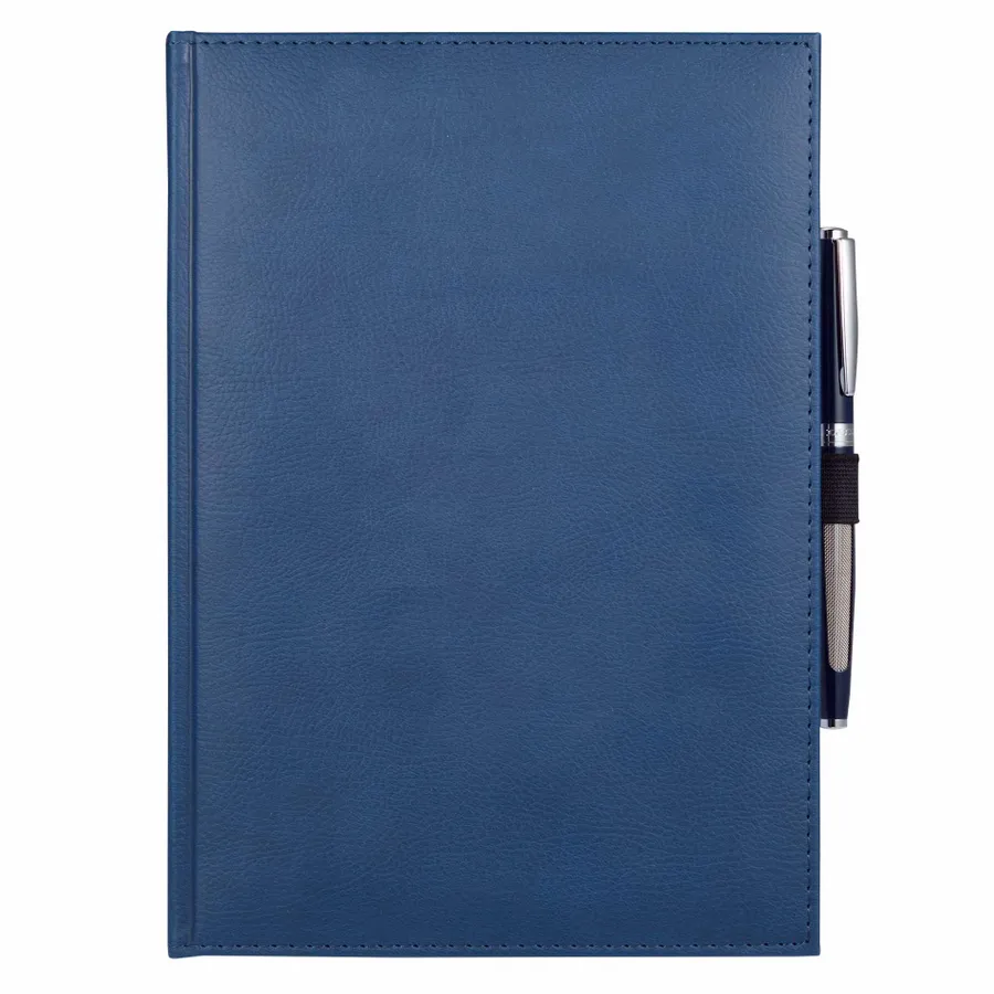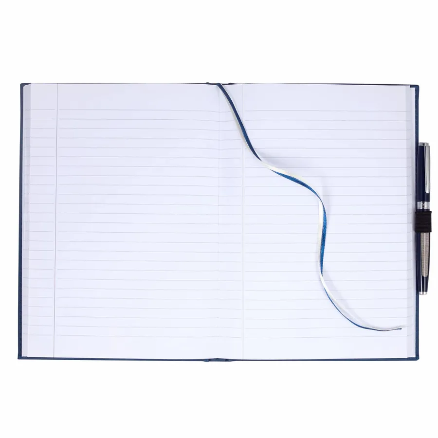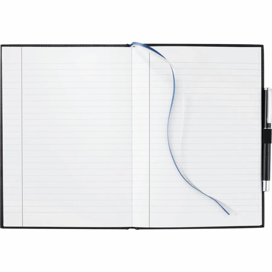 The 7 x 10 FSC Mix Vicenza Large Bound Journal is a pebble-grain, hardcover bound journal containing 96 sheets of FSC Mix white lined paper to record your notes and ideas. It includes a stretchy elastic pen loop, plus blue and silver ribbon page markers to hold your place with ease. Featuring Italian UltraHyde materials, the cover of this pebble-grain bound journal is both stylish and solidly constructed. Pen not included.