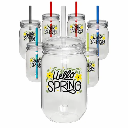 These 24 oz Classic Mason Jars are perfect for storing your favorite beverages. Made from durable AS plastic material, this Single Wall Mason Jar are lightweight and easy to carry. The screw-on lid and straw make it easy to drink from, and the clear plastic allows you to see what's inside. These jars are also dishwasher safe for easy cleaning. They have a 710 mL capacity and are perfect for your favorite drinks, taking drinks on the go. Order your set of 710 mL Classic Mason Jars today and start enjoying all the benefits of these amazing jars!