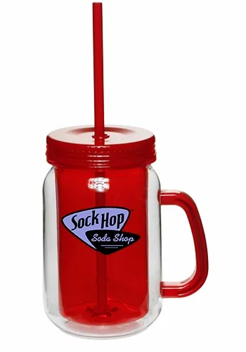 Introducing our 17 oz. Drink Delights Mason Jars with Straw, the perfect blend of charm and modern functionality for your favorite beverages. Crafted with premium quality, these mason jars feature double wall insulation, keeping your drinks at the perfect temperature for longer. The clear outside showcases the beverage inside, while the colored inside adds a pop of vibrancy to your sipping experience. With a solid color lid and matching handle, these jars exude elegance and convenience. The screw-on lid ensures a secure seal, preventing spills while you're on the move. Sip in style with the included matching color straw, providing a comfortable and mess-free drinking experience. Plus, our mason jars are BPA-free, ensuring your health is our top priority. Please note that these jars are not microwave safe. Elevate your beverage enjoyment with our Drink Delights Mason Jars , perfect for picnics, parties, and everyday use.