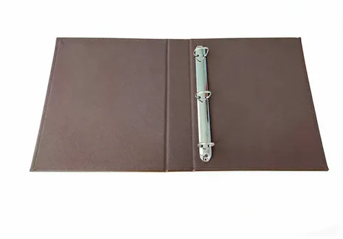 • Introducing our Leather Binders, available in classic colors like black, brown, blue, and burgundy. Crafted from high-quality Polyurethane leather, these binders exude elegance and durability. They're perfect for meetings, conferences, and presentations, enhancing your professional image. Elevate your document organization with our PU Leather Binders, combining style and functionality seamlessly.