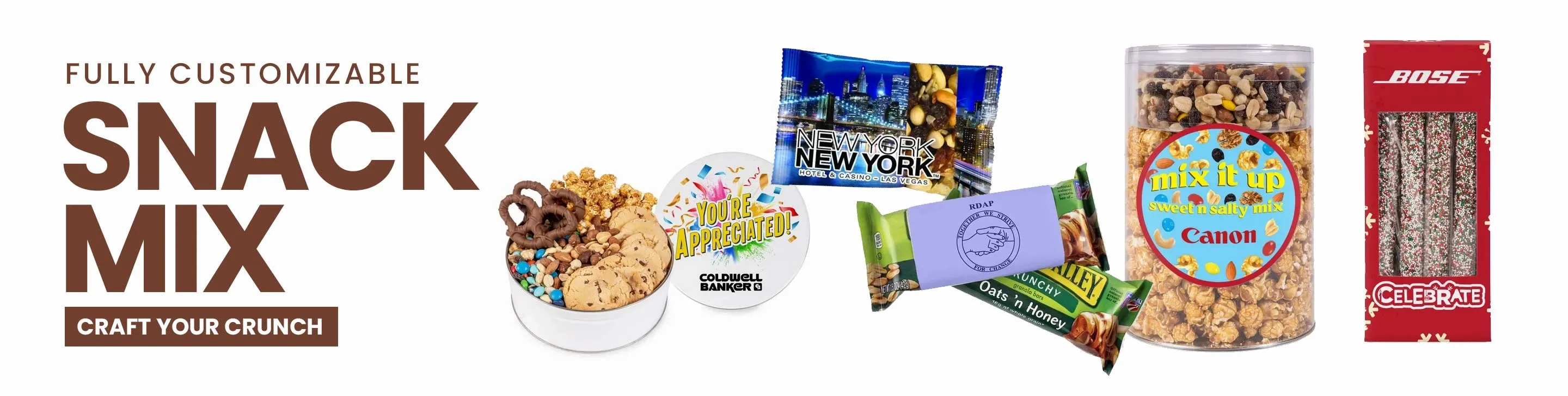 The perfect blend of taste and branding! The snack mix was a hit, and the custom logo on the packaging made it memorable. - Luke T.