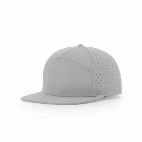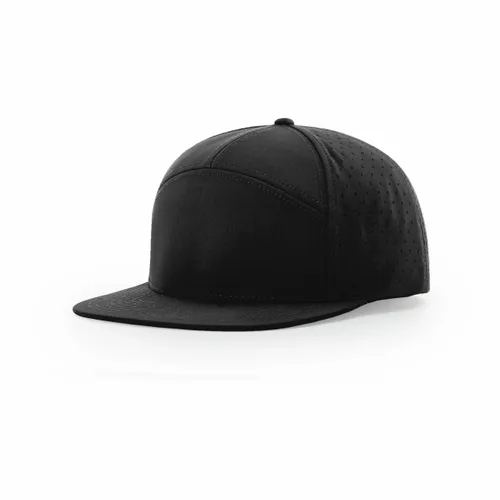 98% Polyester/2% Spandex Stretch Performance Polyester Fabric Water-resistant Material Perforated Laser Cut Side and Back Panels Structured, Seven-panel, Hi Pro Profile Flat Bill Stay Dri Performance Sweatband Adjustable Snapback Closure