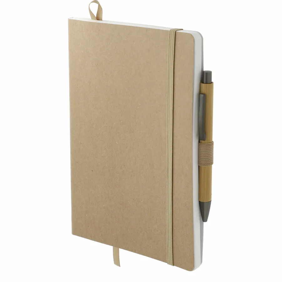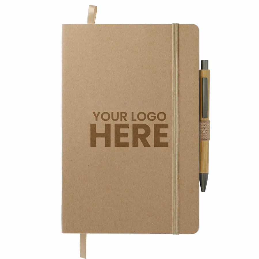 The 5.5 x 8.5 FSC Mix Stone Soft Bound Journal Set includes the 5.5 x 8.5 FSC Mix Stone Soft Bound Journal (2800-95) and Bamboo Quick-Dry Gel Ballpoint (1066-49). The 5.5 x 8.5 FSC Mix Stone Soft Bound Journal features a FSC Mix soft paper cover. It includes 80 sheets of lined stone paper, which is water-resistant, tearproof and noticeably smooth for a superior writing experience. It also features an elastic closure, ribbon page marker, elastic pen loop and back document pocket. And through a partnership with 1% For The Planet, one percent of sales of all EcoSmart products are donated to environmental nonprofits. Due to the nature of the material, there may be color variances.