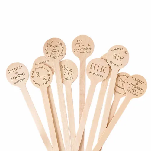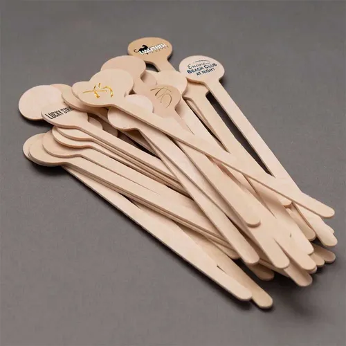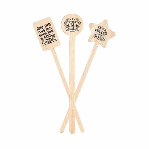Enhance your beverage presentation with our Wooden Shaped Stir Sticks. Perfect for bars, cafes, and special events, these stirrers add a touch of elegance and personalization to any drink. Made from high-quality wood, these stirrers are not just functional but also a statement piece for any occasion.