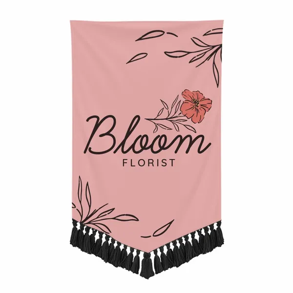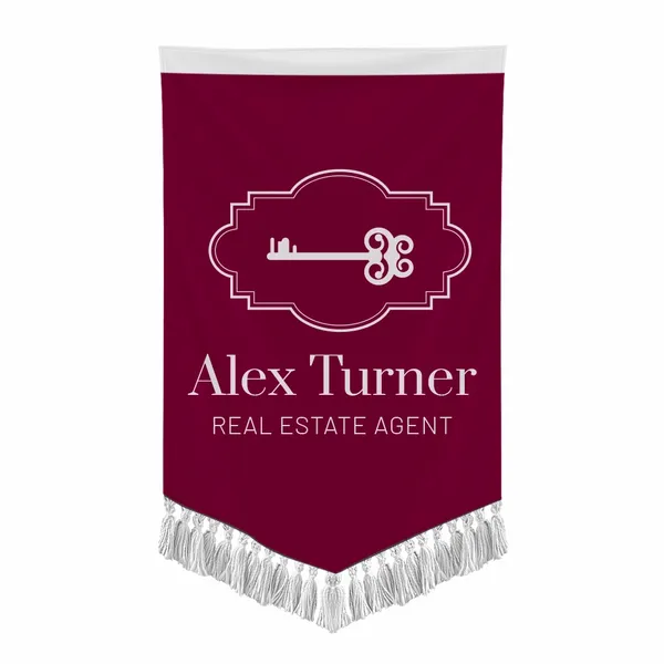 The combination of premium polyester fabric, rich dye-sublimation printing, and the decorative bottom fringe gives it a more formal and elegant feel than a typical vinyl or utility banner.