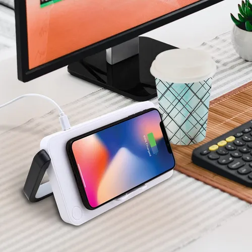 The Chi-Charge Phone Stand with Warm Light Lamp is a great little companion for the home, office, or even when traveling. It wirelessly charges up Qi-compatible devices, is a phone stand for those important video calls, and provides a warm glowing light for those late work nights. It is easy to set up and operate. Simply connect from the Type-C port with the included cable, lay it flat, and place your phone on top.